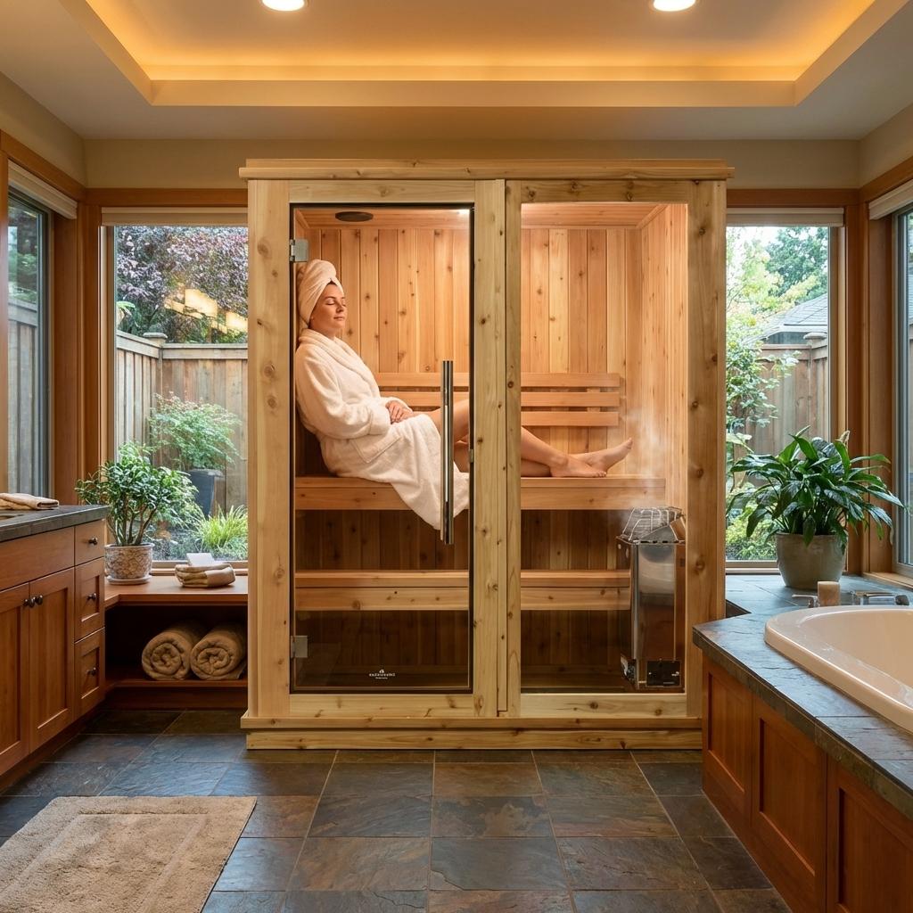 Compact home models like the Almost Heaven Rainelle Indoor Sauna provide a traditional-style sauna experience designed specifically for home wellness spaces.