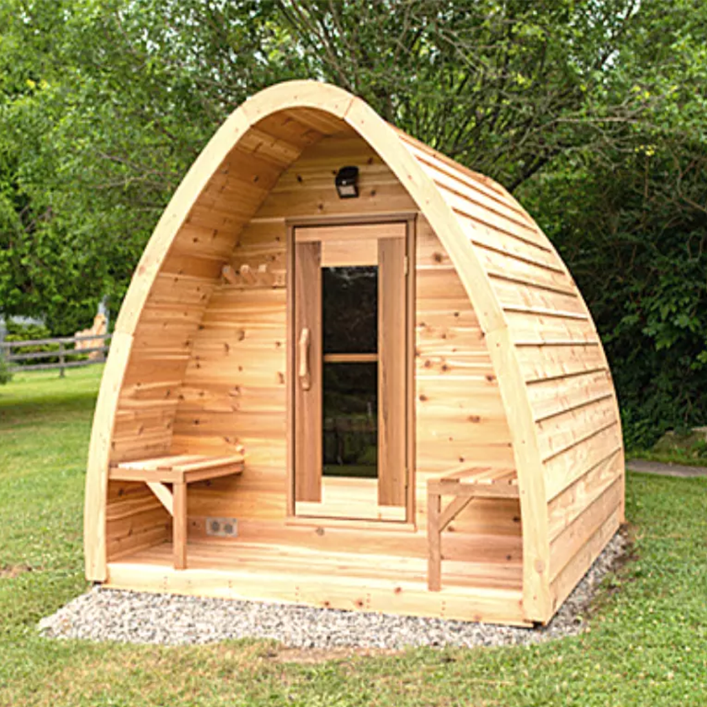Cabin saunas have a traditional square or rectangular shape and offer more interior space and bench layout options. They are available in both indoor and outdoor models and are often easier to insulate due to straight walls.