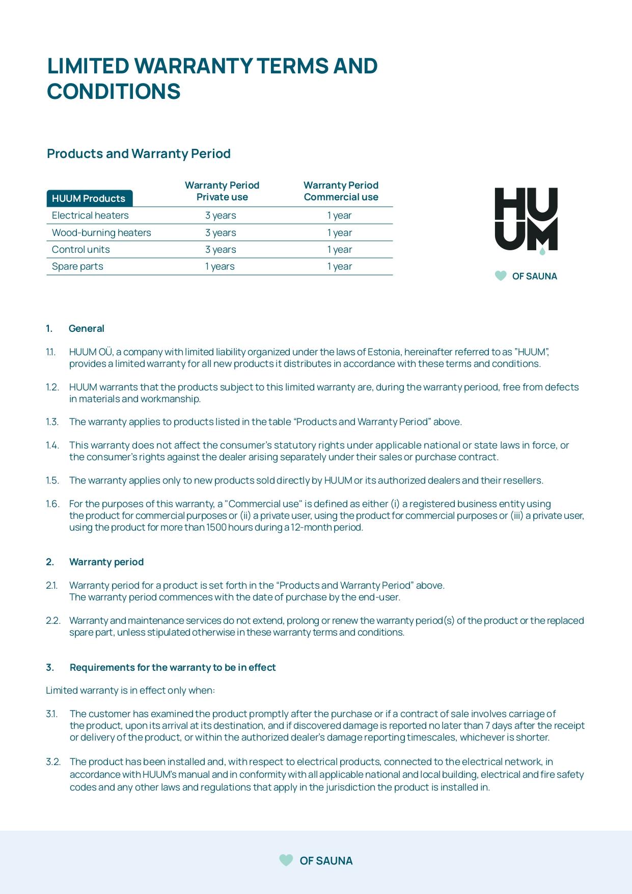 Your Harvia heater comes with a 1-year warranty on the heating elements (coils) and a 5-year warranty on the other heating components. Additionally, we will replace any defective components. Your heater warranty does not cover incorrect electrical connections, not following manufacturer recommendations, improper stone placement, normal wear-and-tear, or corrosion that results from being near saltwater or using water hard water for löyly, which is the Finnish term for the steam generated from pouring water onto the stones. The warranty does not cover electrician costs incurred from any warranty claims.