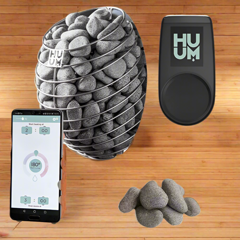 The HUUM DROP sauna heater package includes the award-winning, compact DROP 7.5kW sauna heater, the UKU control (with Wi-Fi as an optional feature), and sauna stones, providing everything you need to transform your sauna space into your dream sanctuary. Designed for sauna rooms up to 441 cubic feet (CF), this package ensures a seamless and enjoyable sauna experience, elevating your wellness routine to new heights.